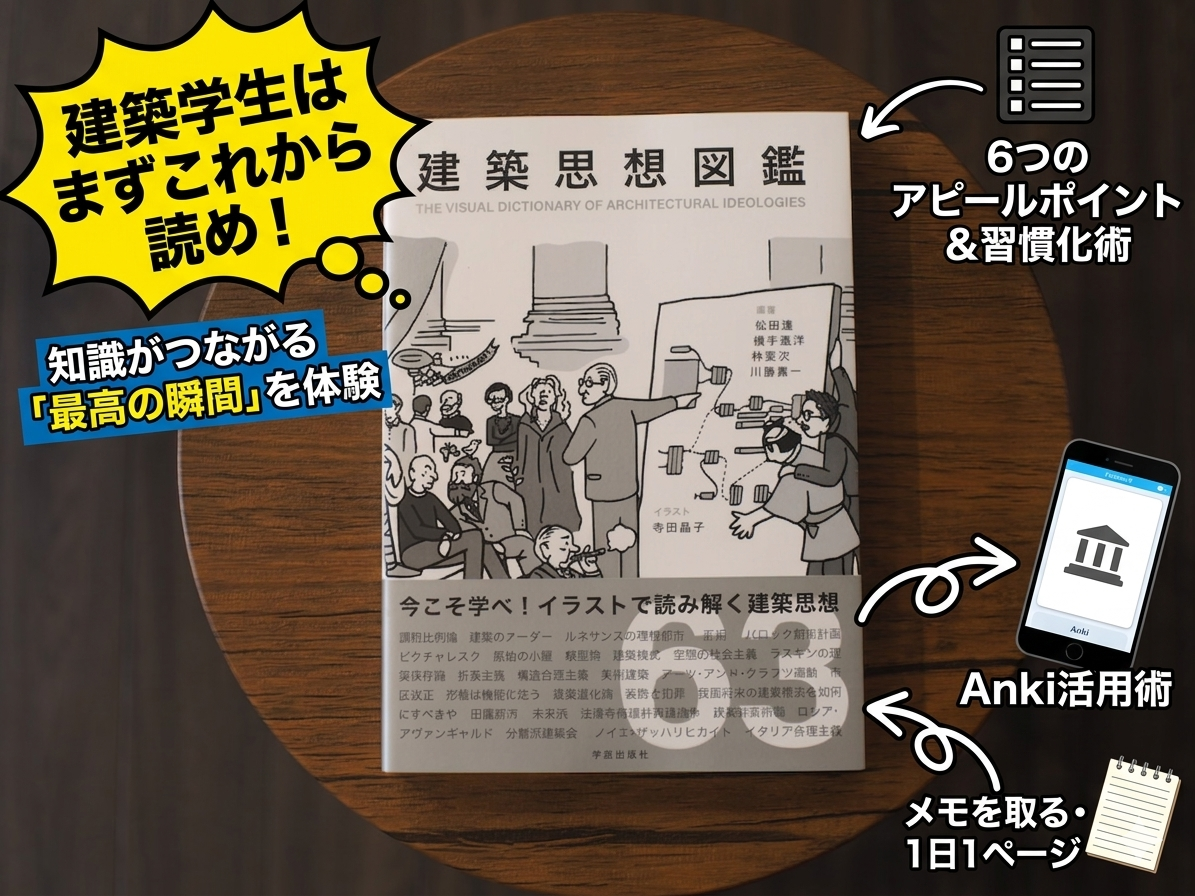 建築の勉強が一番楽しいのは、知識がつながったときです。 製図や設計をしていて、「あ、この手法ってあの思想の○○じゃん!」と点と点がつながる。この瞬間が最高に気持ちいいんです。まずは読んでみていろんな知識を蓄えてみてください。それがあなたの財産になるはずです。